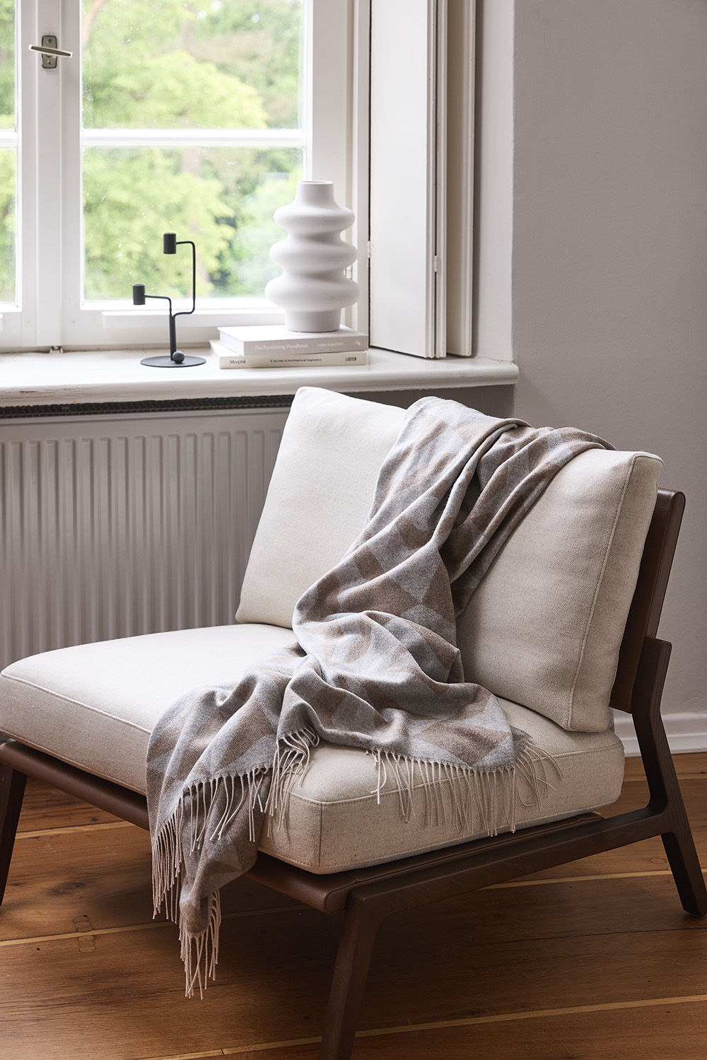 Alles beginnt mit der Grundlage. Bevor wir an dekorative Details denken, müssen wir eine einladende und gemütliche Basis schaffen. Mit den kühleren Tagen wächst unser Bedürfnis, uns mit Materialien zu umgeben, die nicht nur Wärme spenden, sondern sich auch einfach gut und echt anfühlen. Es ist dieser kleine, alltägliche Luxusmoment, wenn wir nach einem langen Tag die Füße hochlegen und uns in die sanfte Umarmung einer kuscheligen Decke hüllen. Für das ultimative Gefühl von Geborgenheit sind unsere Plaids aus einer edlen Kaschmir-Woll-Mischung die perfekte Wahl. Das Plaid Arcade zum Beispiel ist purer Luxus. Mit seinem dezent gestickten Rand und der unglaublich weichen Haptik ist es ein Statement von unaufdringlicher Eleganz. Wenn Sie es etwas grafischer und auffälliger mögen, werden Sie das Plaid Gallery lieben. Sein geometrisches Muster wirkt modern und zeitlos zugleich und ist beidseitig verwendbar. Lässig über Ihr Sofa oder Ihr Bett drapiert, verleihen diese Plaids Ihrem Wohnzimmer oder Schlafzimmer sofort eine angenehm stilvolle Note.