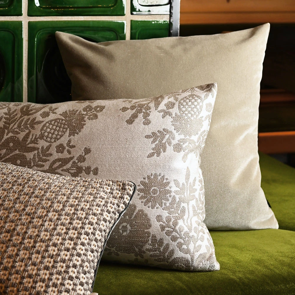 Die Kollektion Heimatliebe übersetzt traditionelle Motive in eine moderne Wohnsprache. Florale Ornamente, grafische Kachelstrukturen und feine Stickoptiken greifen vertraute Formen auf und interpretieren sie zeitgemäß und ruhig. So entstehen Designs, die Geborgenheit ausstrahlen und zugleich klar und modern wirken. Natürliche Farben und handwerklich anmutende Strukturen verleihen den Kissen eine warme, authentische Ausstrahlung. Heimatliebe fügt sich harmonisch in unterschiedliche Wohnstile ein – als ruhiger Begleiter oder als bewusst gesetzter Akzent. Eine Kollektion, die Herkunft spürbar macht und dabei ganz im Jetzt zuhause ist.